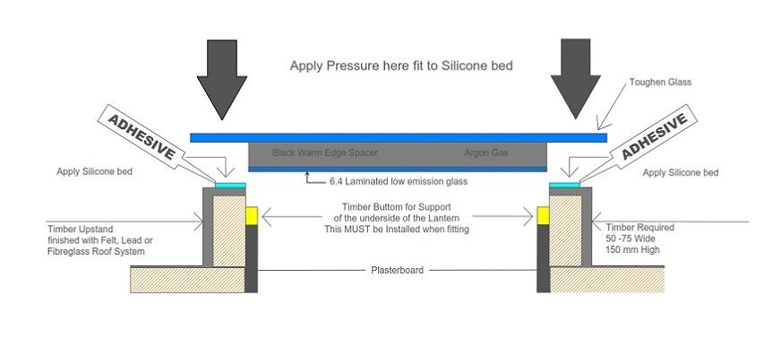 All our roof glass comes with the top glass being 100mm bigger than the bottom glass. Please email your opening sizes to obtain a quote.
